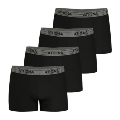 SOBER: These boxer shorts with a sober look in their colours and their cut will be a must-have in your daily life STRETCH: These boxer shorts made from 95% cotton and 5% elastane, will be the most comfortable to wear. The stretchy cotton allows for a well-being and freedom of movement Sober colours are available for this pack of 4 pull-on boxers. You can choose the colors of your boxer shorts according to the set you choose. The Athena branding is visible on each of the elastic bands MAINTENANCE: Wash at maximum 40°C, dry cleaning and bleaching are prohibited. Tumble drying is allowed, and ironing should be done at a maximum of 110°C
