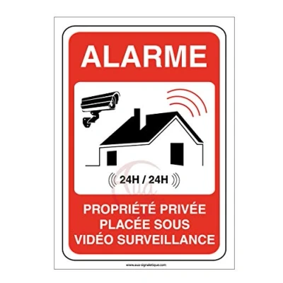 AUA SIGNALETIQUE Autocollant propriété privée sous Alarme vidéo Surveillance 24H /24 150x210 mm, Vinyl adhésif