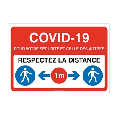 Aua Signaletique Panneau de Signalisation Respectez la Distance 1 m avec Pictogramme Iso 7010 Rouge 150X105 Mm, Pvc 1. 5 mm