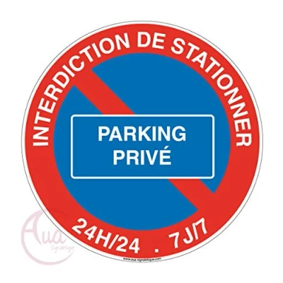 Aua Signaletique Panneau Interdiction de Stationner Parking Privé Ø 230 Mm, Pvc 1. 5 mm