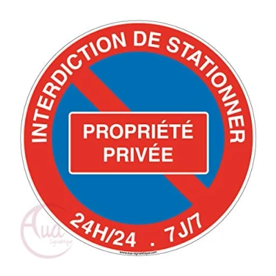Aua Signaletique Panneau Interdiction de Stationner Propriété Privée 24H 24 7J sur 7 Ø 230 Mm, Aluminium Dibond 3 mm