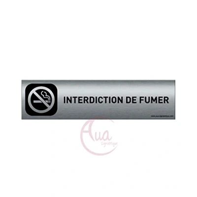 AUA SIGNALETIQUE Plaque Aluminium brossé imprimé AluSign DARK 200x50 mm Double Face adhésif au dos (Interdiction de fumer)