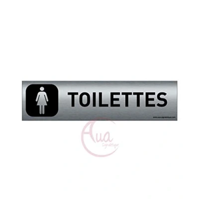 AUA SIGNALETIQUE Plaque Aluminium brossé imprimé AluSign DARK 200x50 mm Double Face adhésif au dos (Toilettes Femme)