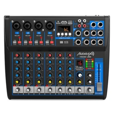 Audibax MG08 USB Mesa Mezclas 8 Channels Con Bluetooth, MP3, Rec y Efectos