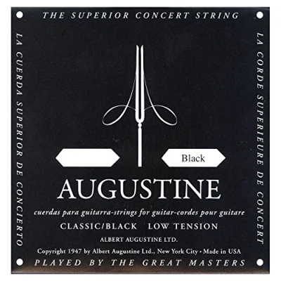 Single E1 Augustine Classic Black Label guitar string Standard treble string in Regular Tension E1: .028" / 0.71 mm in diameter Also suitable for Augustine Gold Label