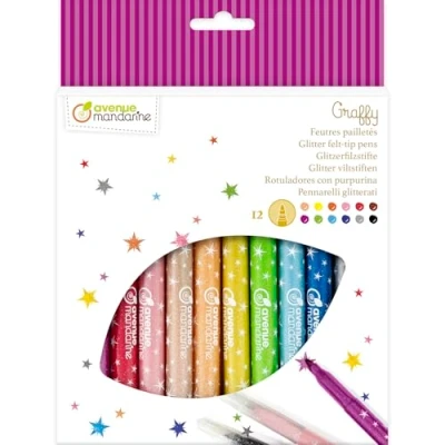12 Glitter Felts: a bag of 12 glitter pens to add a glittering effect to your children's drawings. BLOCKED LEADS: No risk of deteriorating these felt-tip pens even with too much writing. WASHABLE INK: Put clothes in the machine and small hands under a little soapy water and you're done! Conforms to CE standards. ECO PACKAGING: plastic-free packaging., Manufacturer: Clairefontaine Rhodia