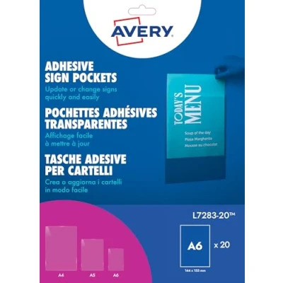 Avery 20 self Adhesive Display Pockets 114 x 155 mm (for A6 Sheet)
