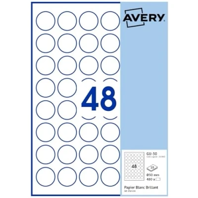 AVERY 480 glossy white inkjet labels 30 mm round