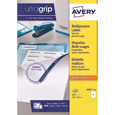 Avery Adhesive Labels Multi Purpose White 105 x 148 mm