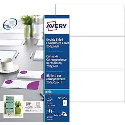 Avery C2358 25 Printable Double Sided Compliment Cards, 3 Cards Per A4 Sheet, White