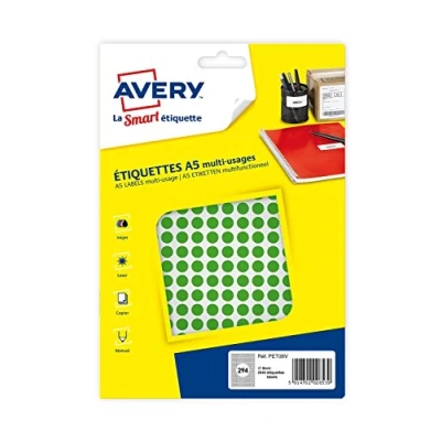 AmazonA5 sheet format Permanent Adhesive Report, spot, file at a glance Label size: 8 mm Colour: Green Adhesive: permanent quantity: 2940 labels easy to create with templates and free software on the website avery Label format: ø 8 mm Quantity: 2940 labels Label format: Ø 8 mm