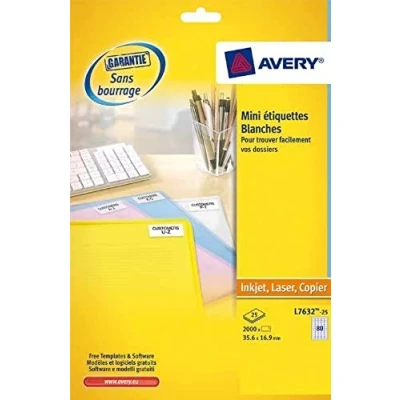 Avery L7632 25 2000x Mini Labels 35.6 x 16.9 mm White for Laser Printers