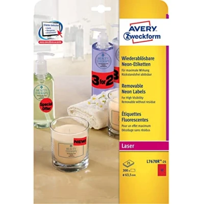 Make your message stand out with theneonlabelsfromAveryL7670R-25. Theredlabelsare ideal for use as promotionallabelsin stores. Offers and prices can be clearly displayed to customers. You can easily create the design of the smalllabelsyourself with the template. You can then print theneonlabelswith a laser printer. The adhesive layer provides good adhesion on different surfaces and leaves no glue residue on removal of the label. As well as stocking the popular Canon, Brother, Epson and HP brands, amongst others, you can also opt for the 123ink compatible versions. Our own-brand ink cartridges and toner cartridges contain more ink than the original brands and will save you money! Not to mention that all of our 123ink products also come with a 100% lifetime guarantee. On top of selling printers and printer consumables, we also have tapes, labels, and an extensive range of office supplies.
