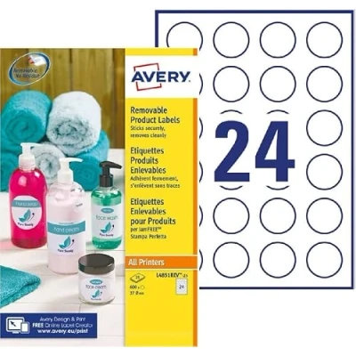Avery Self Adhesive Removable Round Labels, 24 Labels Per A4 Sheet, 600 White