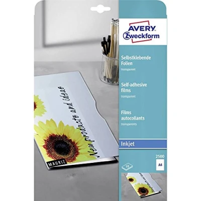 Avery Zweckform 2500 Transparency 0.17 mm Self Adhesive Coated Stack Processable Pack of 10 Sheets