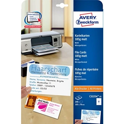 AVERY Zweckform C32254 25 Index Cards (Blank, Printable on Both Sides, Matt White, Extra Fine Micro Perforation, Sheets) for Self Printing All Printers