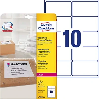 Avery Zweckform L7992 25 Weatherproof Packaging Labels 99.1x57 mm