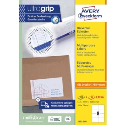 Original Avery 3427-200 multi-purpose labels 105 x 74 mm (1600 labels). As well as stocking the popular Canon, Brother, Epson and HP brands, amongst others, you can also opt for the 123ink compatible versions. Our own-brand ink cartridges and toner cartridges contain more ink than the original brands and will save you money! Not to mention that all of our 123ink products also come with a 100% lifetime guarantee. On top of selling printers and printer consumables, we also have tapes, labels, and an extensive range of office supplies.
