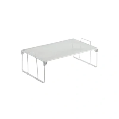 STACKABLE DESIGN FOR MAXIMUM EFFICIENCY - Increase vertical storage space in your kitchen or bathroom with our stackable shelf, perfect for organizing items with ease. HEAVY DUTY METAL CONSTRUCTION - Made to last, our metal shelf offers a sturdy solution for tidying towels, kitchen utensils and more. Optimal dimensions: 41 x 25.5 x 15 cm. The compact but generous dimensions provide ample storage space without cluttering, making it ideal for any corner of the house. Space-saving solution Stylish: The white and grey design blends harmoniously with any decor, adding a touch of class while saving space. Multi-purpose shelf for every need: not only ideal for bathrobes and towels, but also for a variety of items, from kitchen to bathroom items, maximizing order.