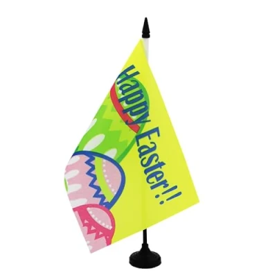 AZ Flag Happy Easter Table 5'' x 8'' Office 100% Polyester 21 14 cm Mini Desk with 10'' Pole and Black Plastic Base