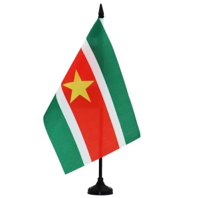 AZ Flag Suriname Table 5'' x 8'' Surinamese Office 100% Polyester 21 14 cm Mini Desk with 10'' Pole and Black Plastic Base