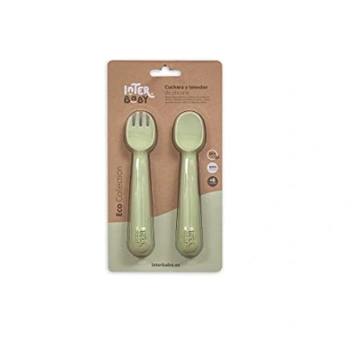 Food Grade Silicone Spoon and Fork Set Suitable for children over 6 months. 100% silicone cutlery, free of BPA, phthalates, cadmium and lead. The cutlery is dishwasher and microwave safe. Spoon size: 14 x 2.7 x 2.2 cm. Fork measurements: 14 x 2.8 x 2.2 cm. Manufactured according to EU regulations.