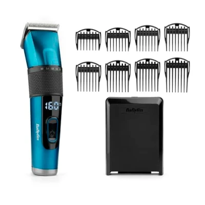 Precise wireless hair trimmer for exact cuts at any hair length, can also be used with cable High quality precision blades made of Japanese stainless steel for effortless and precise haircuts Powerful lithium-ion battery allows up to 160 minutes of wireless operation time Digital LED display clearly shows cutting length, battery status and locking mode Choose from 45 different cutting lengths with 8 comb attachments and easily set 5 digital cutting lengths with the rotary wheel
