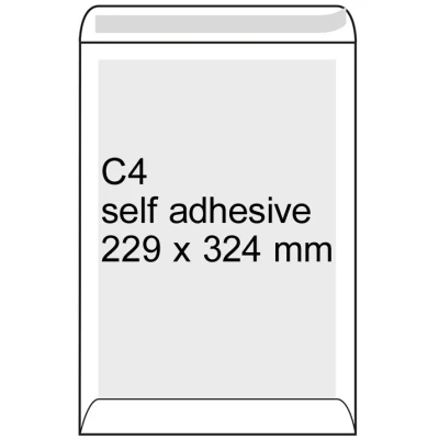 Back Board C4 white envelope self adhesive, 229mm x 324 mm (100 pack)
