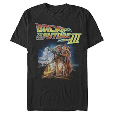Back To The Future Mens Future 3 Basic Solid Tee T Shirt, Black, Large US