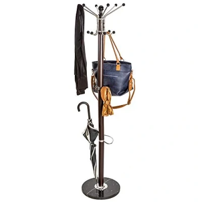 Add an elegant and refined touch to your entryway with the new Bakaji 16 hook This beautiful clothes rack is made of high quality powder coated metal. It consists of 16 chrome plated hooks with plastic knob, including 12 at the top and 4 in the middle for storing bags, coats and anything you want. With umbrella hook, perfect for large and small umbrellas. With round marble base, which gives the wardrobe excellent stability, and gives the entire wardrobe a beautiful elegant touch. Simple and elegant design that will add a special touch to your entryway by enhancing the ambience and perfectly matching any decor. The materials used and their properties make the Bakaji 16 hook hanger a very high quality piece of furniture that must not be missing in your home. Dimensions: 38 x 38 x 180 cm