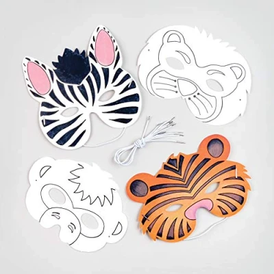 These craft kits are perfect for the 'monkeys' and 'pesky tigers' who love to dress up with the game Have you ever wanted to be a lion or maybe a striped zebra?Well, now is your chance! Kids who love the jungle will be delighted to create a new life perspective on masks Color and wear them and let the games begin, you will have hours of fun 8 animal designs includedGiraffe, Lion and Zebra!All come with 20cm wide elastic cord