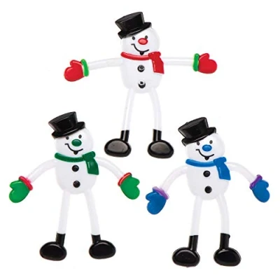 Party Favors Kids can enjoy these Christmas characters by bending and twisting for hours of fun. Bend these figures alone or with friends together and see what crazy shapes your figure can take. CHRISTMAS THEMED - Children can enjoy these Christmas themed toys, including snowmen in 4 different designs. CHRISTMAS TOYS Use such toys for winter holidays as an alternative to candy for boys and girls. Ideal for parties, birthday parties, raffles, prizes, small gifts and pocket money toys. PACKAGE INCLUDES - 4 bendable snowmen in 4 different designs. Each snowman measures 9.5 cm. MADE BY EXPERTS - Baker Ross has been designing and supplying the best arts and crafts supplies as well as toys to schools, groups and parents for over 40 years. All products comply with general product safety regulations and give age recommendations where applicable.