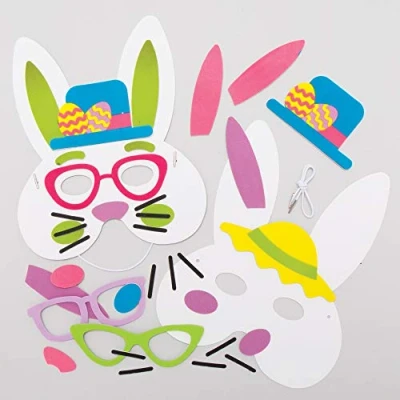 Easter Activities Kids will love painting their very own Easter person and then wearing them as a fun spring dress up. You can decorate them with all colours of the rainbow! KIDS MASKS Why not host a special masked Easter festival where children can display their masterpieces? Ideal for dressing up. Mask making kit for children: colour, dress up and lots of Easter fun! Colour in with our Deco pens or fibre pens (not included). PACKAGE INCLUDED Each kit includes an elastic foam mask and self-adhesive foam parts. 4 different designs. Size: 19cm wide. Pre-cut elastic foam masks. Includes instructions (English language not guaranteed). English language not guaranteed). No glue required. MADE BY EXPERTS Baker Ross has been designing and supplying the best arts and crafts supplies as well as toys to schools, groups and parents for over 40 years. All products comply with general product safety regulations and give age recommendations where applicable.