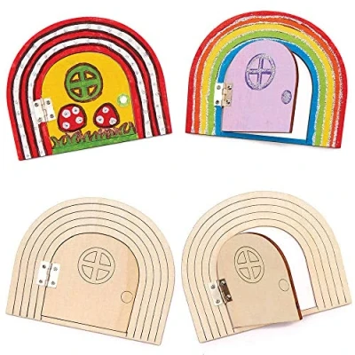 Baker Ross FC825 Rainbow Fairy Door Wooden Craft Set Pack of 4, Crafts for Children, Colouring Children