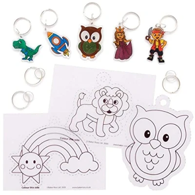 Shrinking Keychains:This keychain making kit for kids will blow the kids away when they see their personal design shrink in the oven. This craft kit shrinks your designs up to seven times smaller (adult supervision required). CRAFT KITS FOR KIDS Kids have fun designing and decorating these art sheets and bringing their art to life. Decorate with our coloured pencils or Deco pens (sold separately). CREATIVE ACTIVITIES FOR KIDS If you want to misplace your keys over and over again or just spice them up with a funky accessory, you are sure to please these keychains. This craft activity is great for kids clubs, classrooms, crafts, individual playtime, rainy days and more. Package includes 12 key chain designs to decorate and shrink, give as a gift or clip on your own key. Each keyring is made from a special material that can be shrunk in an oven. MADE BY EXPERTS Baker Ross has been designing and supplying the best arts and crafts supplies as well as toys to schools, groups and parents for over 40 years. All products comply with general product safety regulations and give age recommendations where applicable.