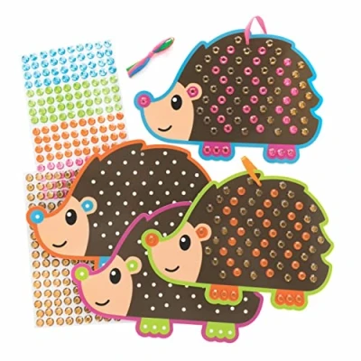 Diamond Art Kits for Kids: Create hedgehogs that will shine and shimmer! These simple diamond painting kits are great for introducing kids to diamond art. The simple to follow templates are perfect for beginners and novice crafters Kids Diamond Painting: These kits are perfect for developing hand-eye coordination and encouraging creativity. With easy-to-follow instructions and mess-free materials, these Diamond Art Kits provide a fun crafting experience for children of all ages. Small Diamond Painting: These simple to craft kits contain all the pieces kids need to create sparkly masterpieces. Kids can simply press the self adhesive gems onto the colourful templates and then displays as glittery decorations. Included in the Pack: 4 Hedgehog Gem Art Kits. Each kit contains hedgehog card template, coloured self-adhesive gems & ribbon. 4 designs. Size 23 cm x 16 cm Made by Experts: Baker Ross has been designing arts and crafts supplies for over 40 years. All products conform to General Product Safety Regulations, and state age recommendation where applicable.