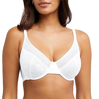 Bali Women's One Smooth U Lace Minimizer, Underwire Full-Coverage Convertible Bra, White