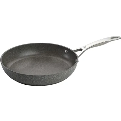 High-quality frying pan with stylish granite look and non-stick coating, for daily cooking, frying and stewing Fast heating material made of forged aluminum for energy efficient cooking, long-lasting cool and ergonomic stainless steel handle Granitium Ti-X 6-layer non-stick coating with an additional layer of titanium, suitable for oven and induction cookers thanks to Radiant induction technology Wide pouring rim for safe and precise pouring without dripping, easy and quick to clean. Dishwasher safe Box contents: 1 x BALLARINI frying pan with stainless steel handle, weight: 1.32 kg, L x W x H: 49 x 28 x 8.5 cm, top diameter: 28 cm, base diameter: 23.4 cm, material: aluminium, colour: grey stone look, 1007043