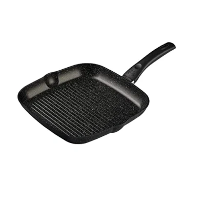 Hot enough? : With the patented THERMOTION hot-cold indicator made from a special bimetal sheet on the pan handle, you can always fry your food at optimal temperature for the perfect taste. Durable and robust: the frying pan made of aluminium has a four-layer, particularly scratch-resistant Nerolite non-stick coating that prevents your food from sticking. The grooves allow for fast, low-fat frying without burning. Quick and hot: the patented bimetal base with specially designed metal elements and the radiant induction technology ensure fast and even heat distribution on induction cookers and make frying and stewing a pleasure. Always nice and cool: the ergonomic handle of our rectangular grill pan is suitable for any hand, is comfortable to handle and remains pleasantly cool, even after a long cooking time. Box contents: BALLARINI Vipiteno grill pan, rectangular, diameter top 27 cm / base 24.1 cm, L 47.7 x W 30.1 x H 8.3 cm, aluminium, Nerolite non-stick coating, all types of cookers including induction, dishwasher safe, dark granite with white dots, item no. 1022577