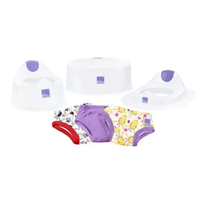 Potty training bundle designed to make potty training fun and easy. Award-winning pull-up style reusable potty training pants are the perfect step away from nappies towards big-kid pants! The potty is a lightweight and sturdy potty to help encourage independence when toilet training. The step stool is a practical step stool designed to help your child get to those hard-to-reach areas. The toilet training seat is a comfortable seat to help ease the move from the potty to the toilet.