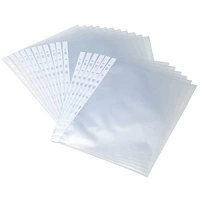 DIN A4 Made from polypropylene (PP), thickness: 0.03 mm Matte and grained films, transparent With reinforced universal punching Pack of 100