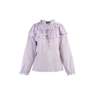 Cotton Blouse Romantic boho style Cotton with polka dots Ruched design High ruffle collar