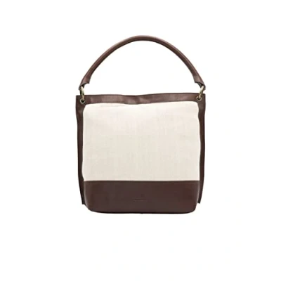 Feminine handbag Made of soft leather with canvas Zip pocket on the back Interior slip and zip pocket Spacious inner compartment