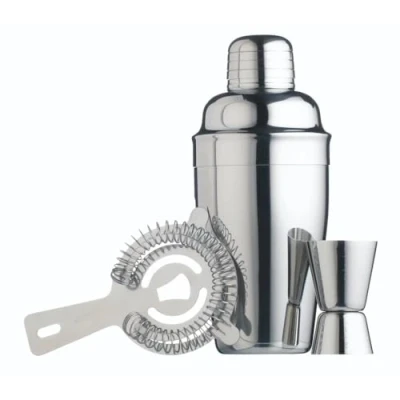 ALL THE ESSENTIALS: this beginner friendly cocktail making set has all the basics you need to shake pro-quality cocktails at home WHAT'S INCLUDED: you get a cobbler shaker with a firm-fitting lid, plus a hawthorne cocktail strainer and a double sided jigger SLEEK LOOKS: with its handsome stainless steel sheen, it will add glamour to any home bar or kitchen RECIPES INCLUDED: you also get an exclusive recipe pamphlet, featuring some of the world's best-loved cocktails A STUNNING COCKTAIL GIFT: it comes packed in an attractive cardboard gift box, complete with a 12 month guarantee