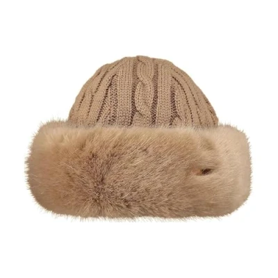 Barts Fur Cable Bandhat Beret, LIGHT BROWN, One Size