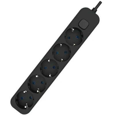 Heavy duty 5T black power strip with built-in switch and 1.5m cable for convenient power distribution. Ideal for connecting multiple devices without worrying about the 5T Black Power Strip with Switch and 1.5m Cable, ideal for connecting and managing multiple electronic devices with safety and convenience. Multi Base 5T features switch and 1.5m cable, ideal for organizing and connecting multiple devices. Its black color fits any space while maintaining aesthetics. The MULTIPLE BASE 5T C/INT C/CABLE 1.5m BLACK EB stands out for its 1.5m cable, offering greater flexibility and reach to connect devices in different locations. Ideal for spacious spaces where outlets are limited. Power Strip with 5 outlets and integrated 1.5m cable in black, ideal for connecting multiple devices safely and efficiently in workspaces or at home.