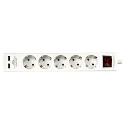 Base of 5 sockets + 2 x USB. Cable 1.4 m.