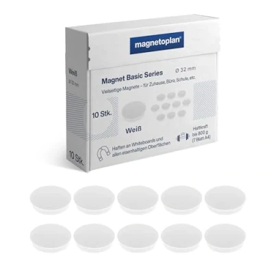 Basic Series Magnet 32 mm White Pack of 10 Holds 800 g