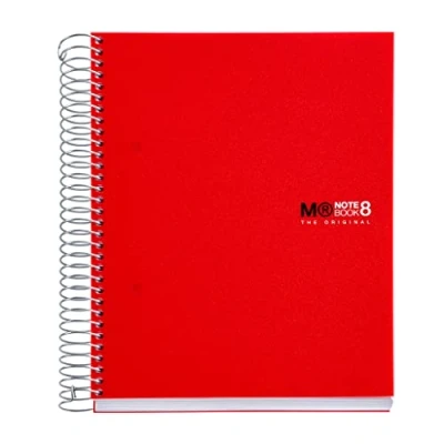 Basicos MR 43003 Notebook 8 Colours, A5, 200 Sheets, Horizontal, Polypropylene, Red