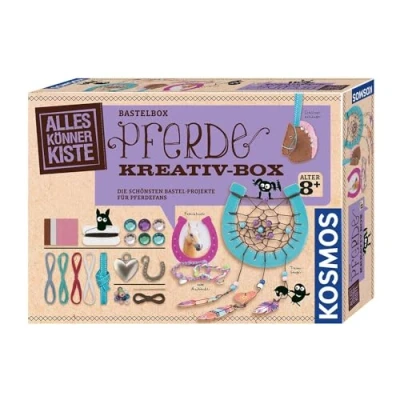 Craft projects for horse fans – whether dream catchers in horseshoe shape, cool bracelets or cute key rings – there are no limits to creativity Detailed step-by-step instructions: the lovingly designed instruction booklet is fully illustrated and guides you and your child through the craft projects Suitable for beginners: even beginners experience wonderful craft success thanks to the easy-to-follow instructions (English language not guaranteed) High-quality material: instructions (16 p. ), 3 felt plates, cotton ribbon, chiffon ribbon, glitter stones, wax cord, beads, sewing thread, sewing needle, wooden punch sheet and two pendants for bracelets The ideal gift set: the all-rounder boxes contain all the materials to get started immediately. Perfect for craft afternoons in the family or children's birthdays, Manufacturer: KOSMOS